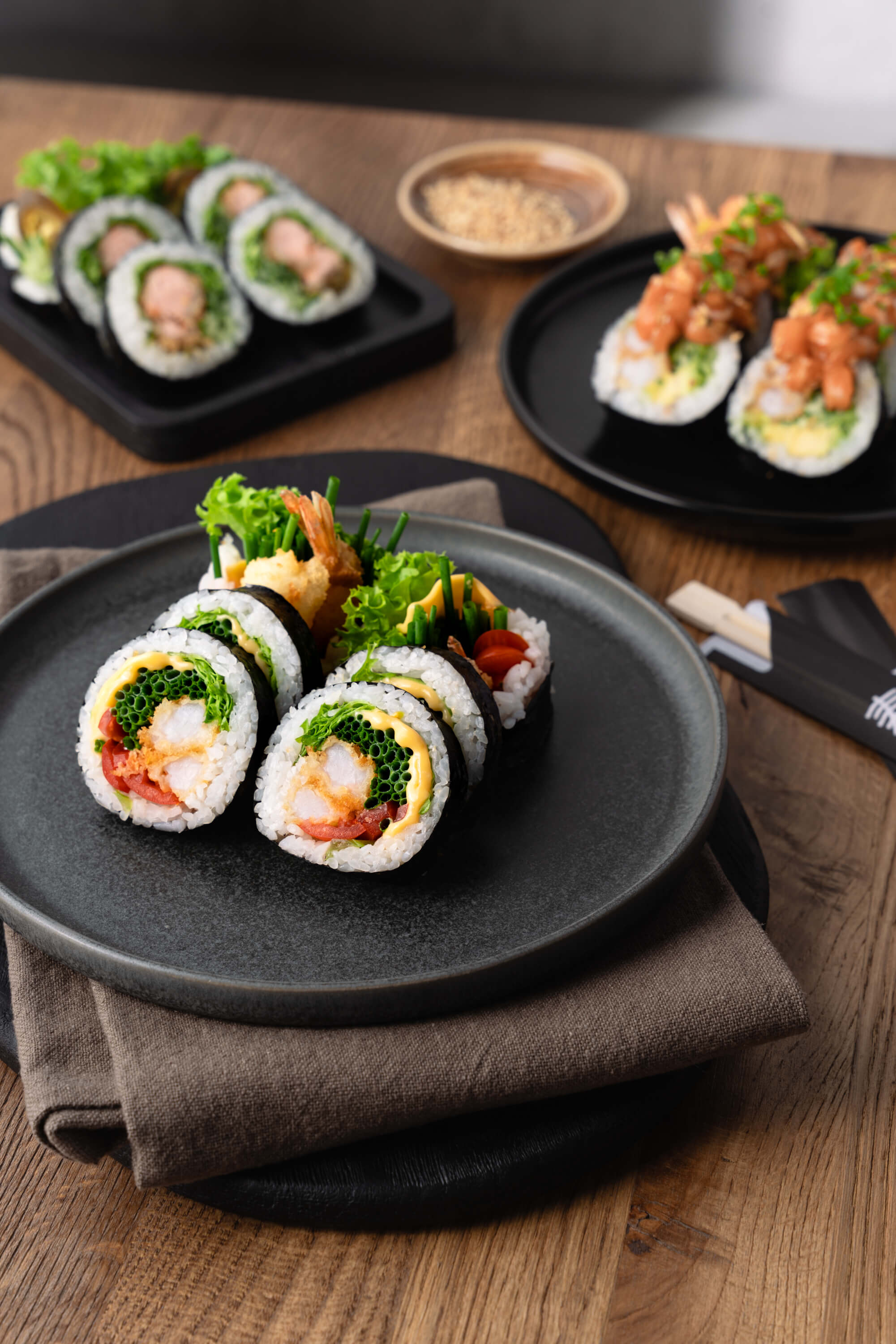 w naszym menu znajdziecie zarówno pozycje tradycyjne (nigiri, maki, uramaki, hosomaki, sashimi, sushi w tempurze) jak i fusion, dla wegan, wegetarian, sportowców czy na diecie keto.